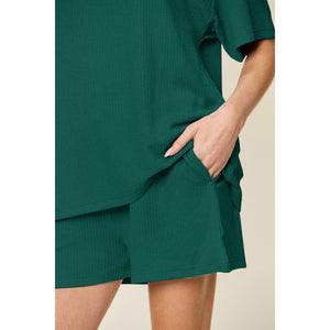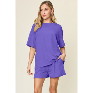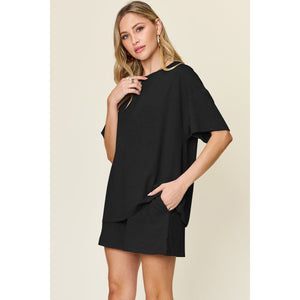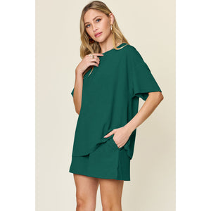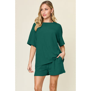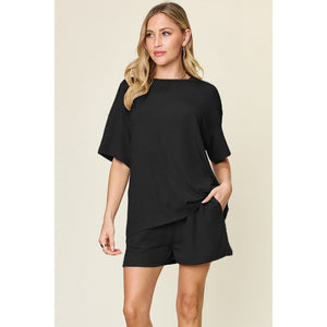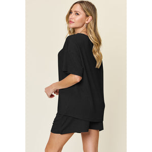 Double Take Full Size Round Neck Short Sleeve T-Shirt and Shorts Set