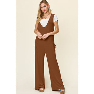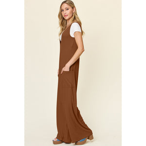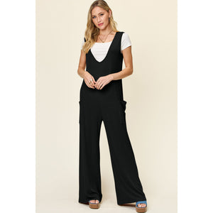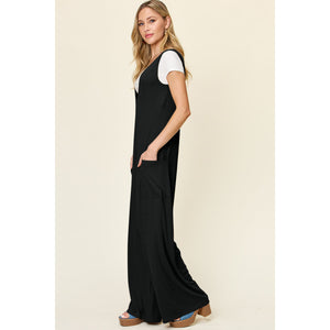 Double Take Full Size Sleeveless Wide Leg Jumpsuit with Pockets