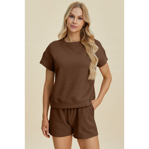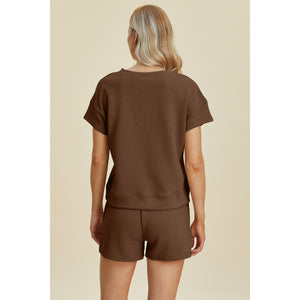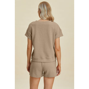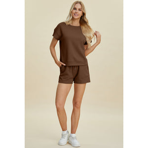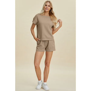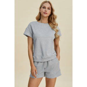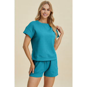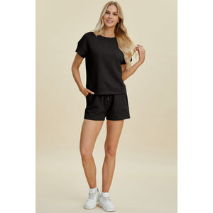 Double Take Full Size Texture Short Sleeve Top and Shorts Set