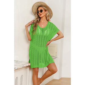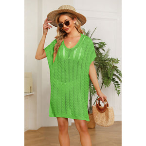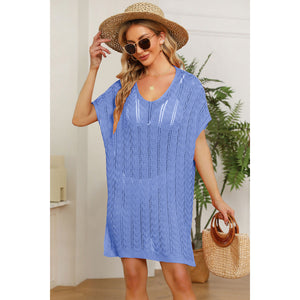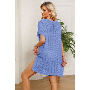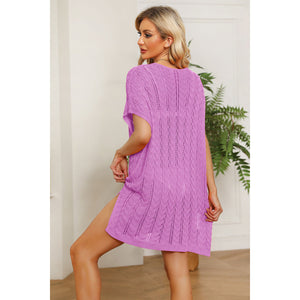 Double Take Openwork Short Sleeve Slit Knit Cover Up