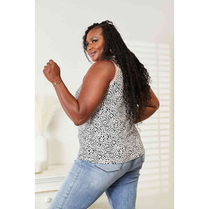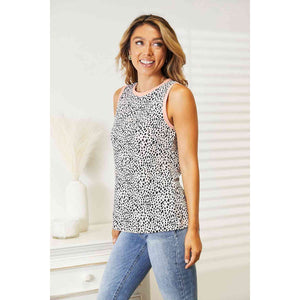 Stay cool and stylish in this printed round neck tank. The vibrant print and flattering silhouette make it a versatile and must-have piece for any casual or dressed-up look.