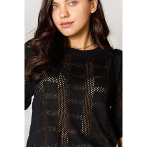 Double Take Ribbed Trim Round Neck Knit Top