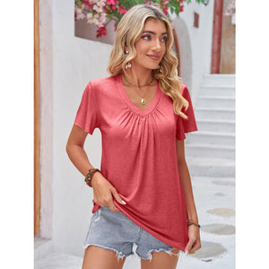 Double Take Ruched V-Neck Short Sleeve T-Shirt