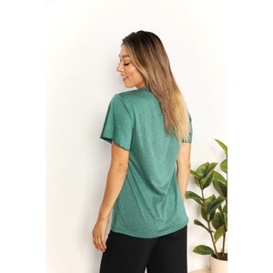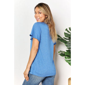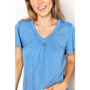 Double Take Ruched V-Neck Short Sleeve T-Shirt