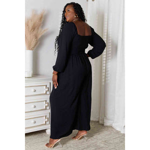 The square neck jumpsuit with pockets is a stylish and versatile piece. With the added convenience of pockets, this jumpsuit is both fashionable and practical for any occasion.