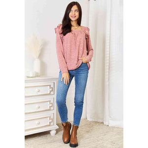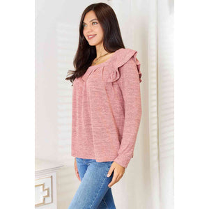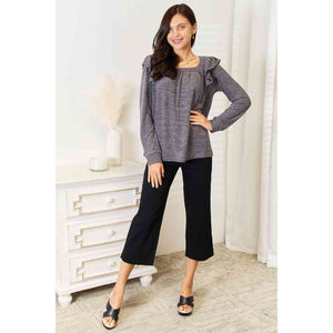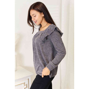 Double Take Square Neck Ruffle Shoulder Long Sleeve T-Shirt