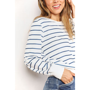 This striped top features a classic round neckline and long sleeves, offering a timeless and versatile look. The regular length makes it easy to pair with different bottoms for a comfortable and stylish outfit. Perfect for adding a touch of sophistication to your wardrobe.