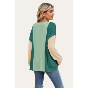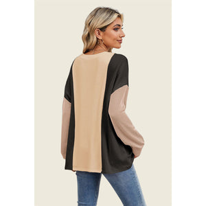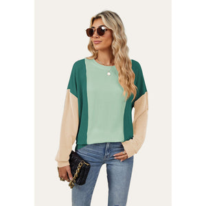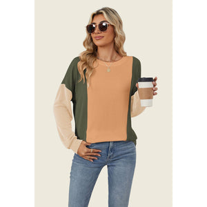 Double Take Texture Contrast Round Neck Long Sleeve T-Shirt