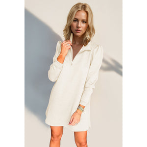 Double Take Textured Quarter Zip Long Sleeve Dress