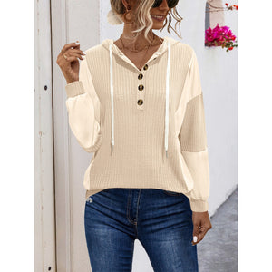 Drawstring Contrast Long Sleeve Hoodie
