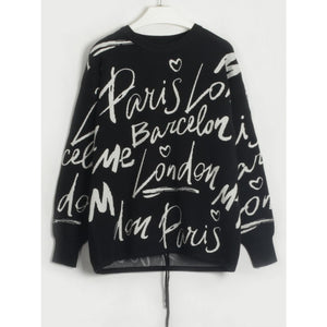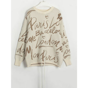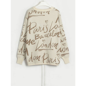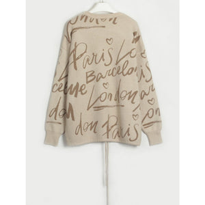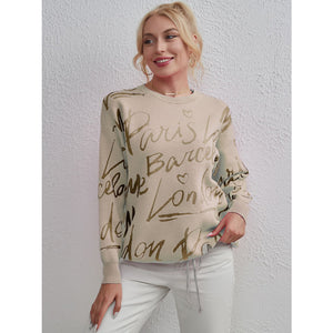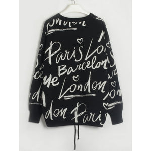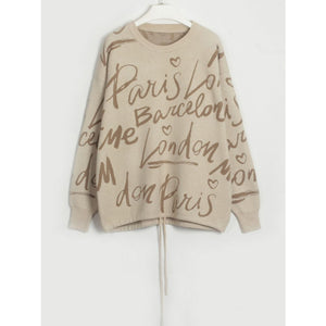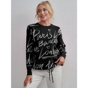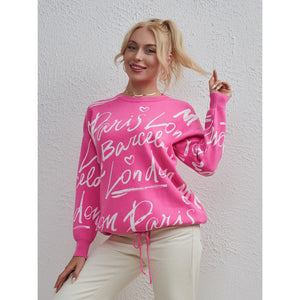 Drawstring Hem Letter Pattern Round Neck Dropped Shoulder Sweater