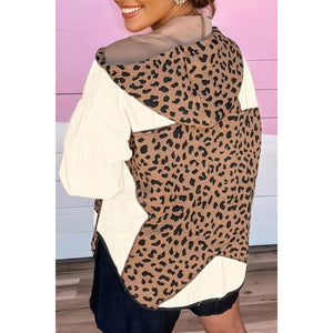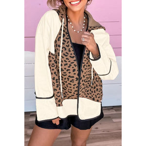 Drawstring Leopard Long Sleeve Hooded Jacket