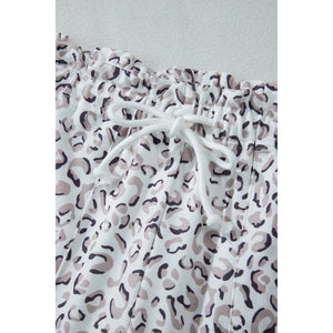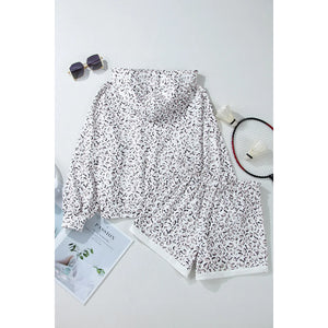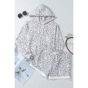 Drawstring Leopard Long Sleeve Hooded Top and Shorts Set