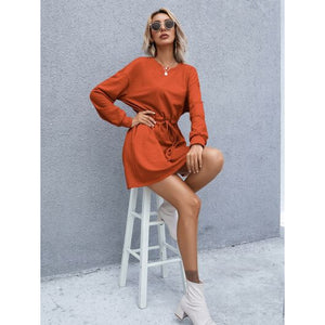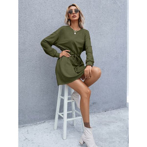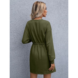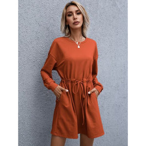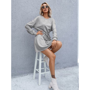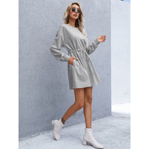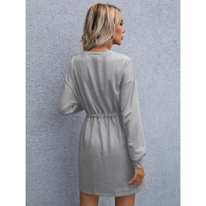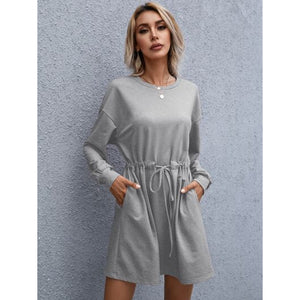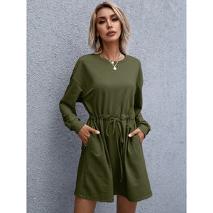 Drawstring Round Neck Dropped Shoulder Mini Dress
