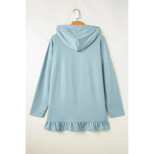 Drawstring Ruffled Dropped Shoulder Long Sleeve Hoodie