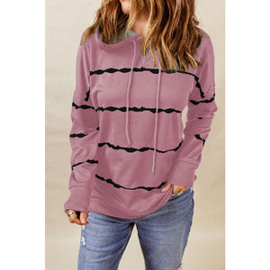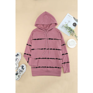 Drawstring Striped Dropped Shoulder Hoodie
