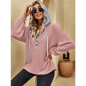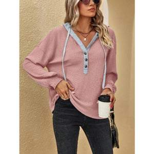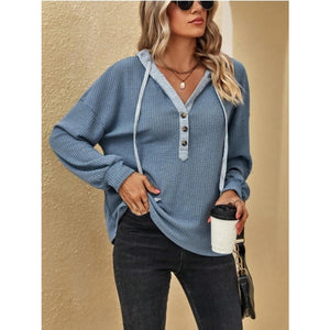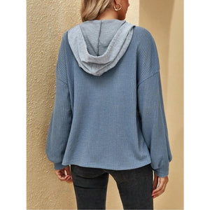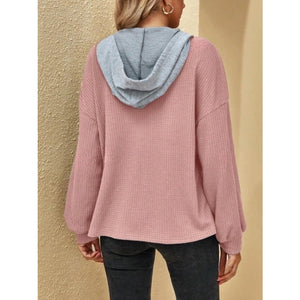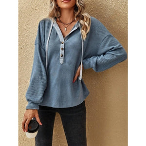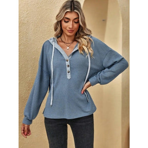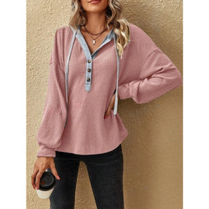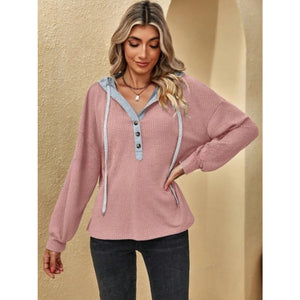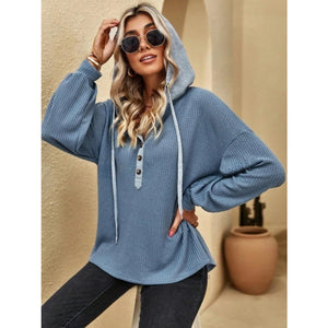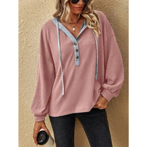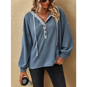 Drawstring Waffle Knit Hoodie