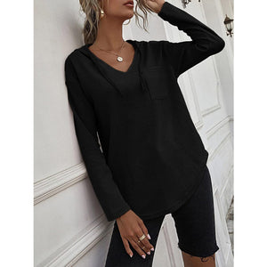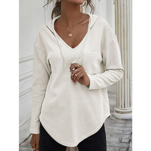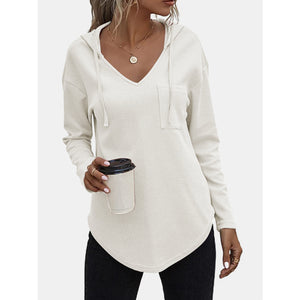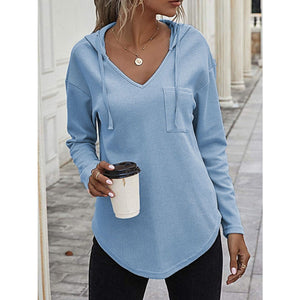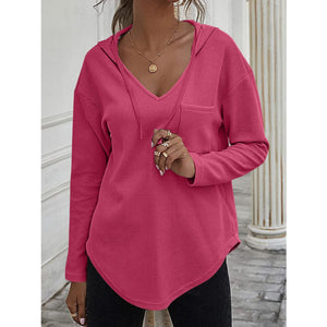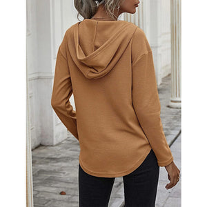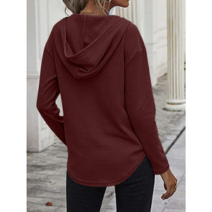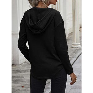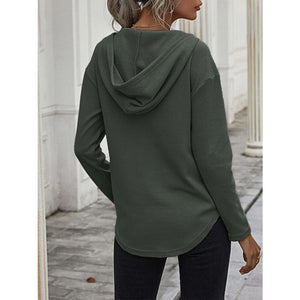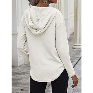 Drawstring Waffle Knit Long Sleeve Hooded Top