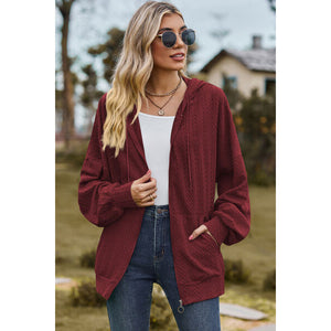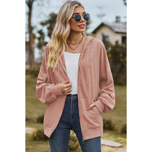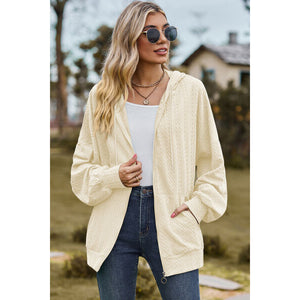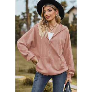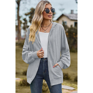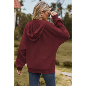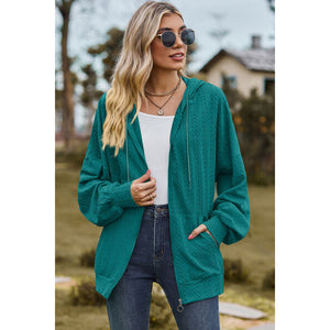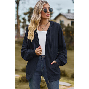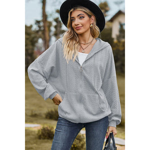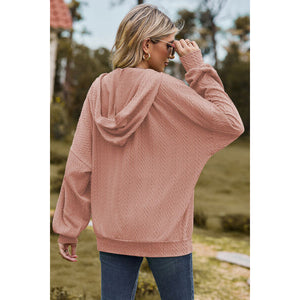 Drawstring Zip Up Dropped Shoulder Hoodie