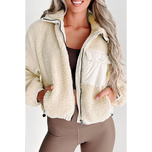 Drawstring Zip Up Sherpa Jacket with Removable Hood