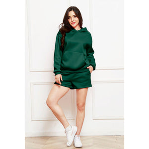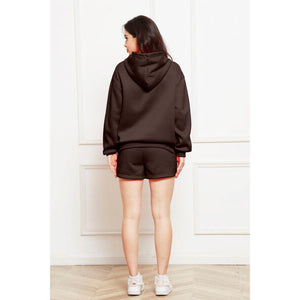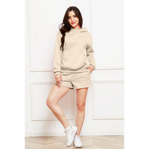 Drop Shoulder Long Sleeve Hoodie and Shorts Set