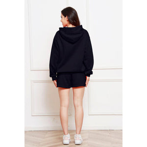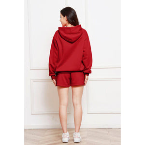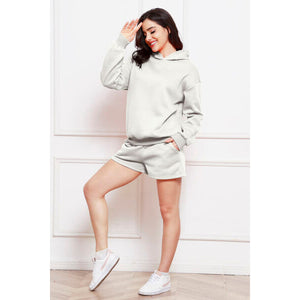 Drop Shoulder Long Sleeve Hoodie and Shorts Set