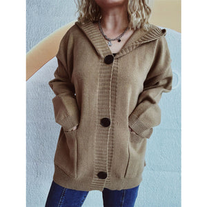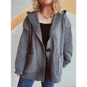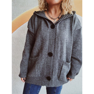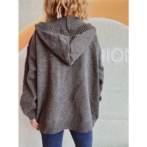 Dropped Shoulder Long Sleeve Hooded Cardigan