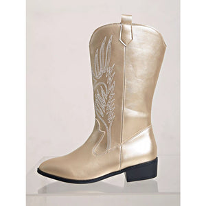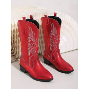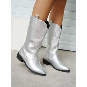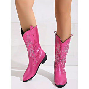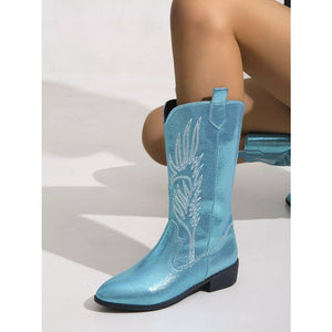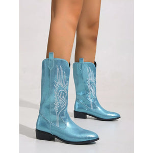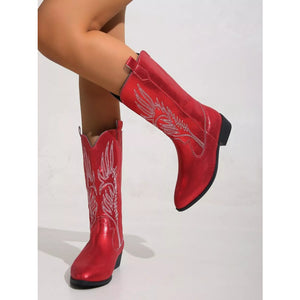 Embroidered Block Heels Boots