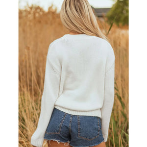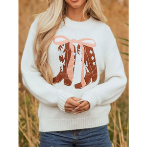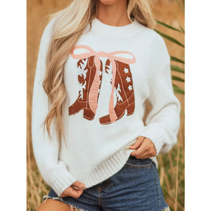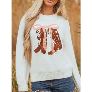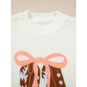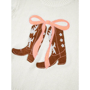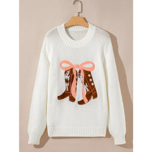 Embroidered Bow Boots Graphic Drop Shoulder Sweater