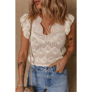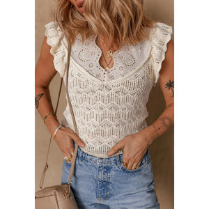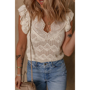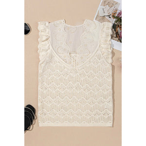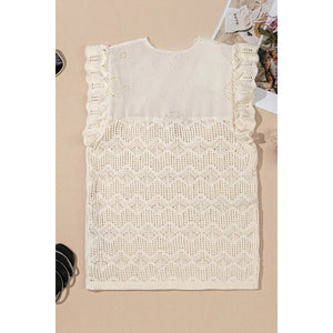 Embroidered Patchwork Hollow Out Knitted Ruffle Sweater Vest