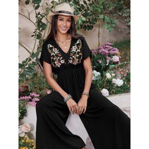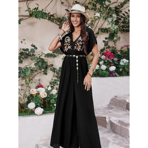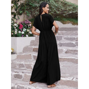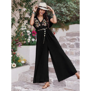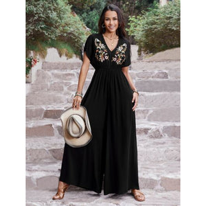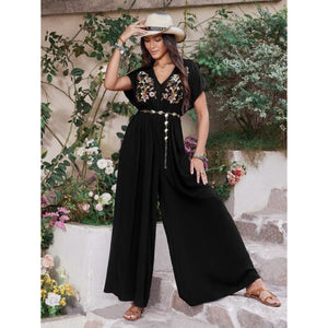 Embroidered Ruched Short Sleeve Jumpsuit