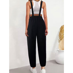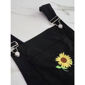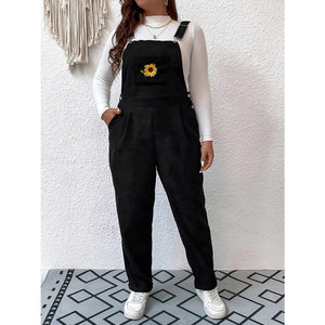 Embroidered Sunflower Wide Strap Overalls with Pockets