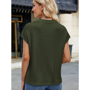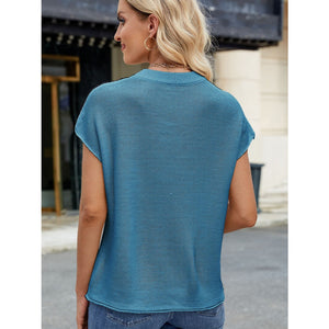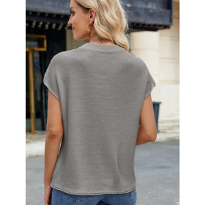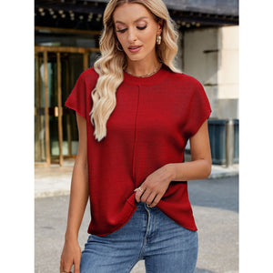 Exposed Seam Round Neck Short Sleeve Sweater