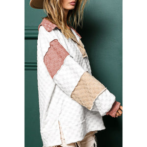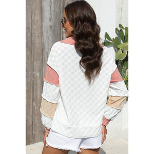 Exposed Seam Side Slit Color Block Long Sleeve Sweatshirt