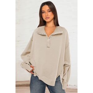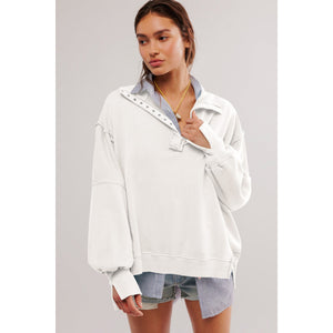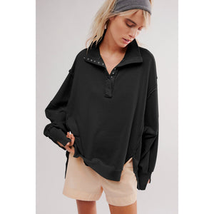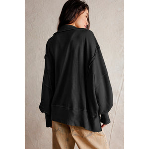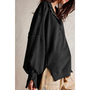 Exposed Seam Side Slit Long Sleeve Sweatshirt