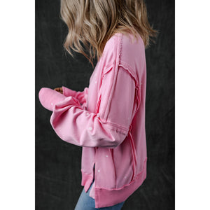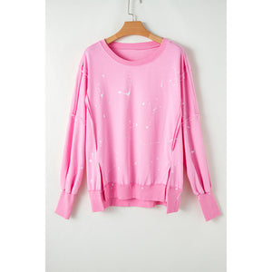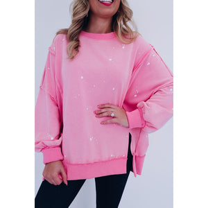 Exposed Seam Splatter Print Round Neck Sweatshirt
