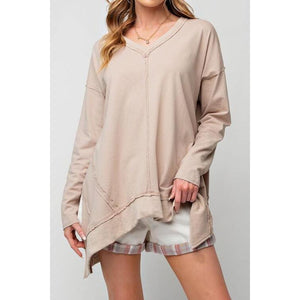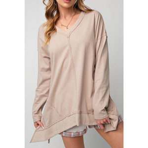 Exposed Seam V-Neck Long Sleeve Slit Sweatshirt
