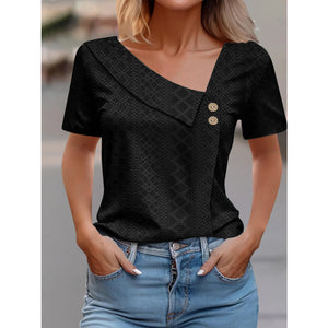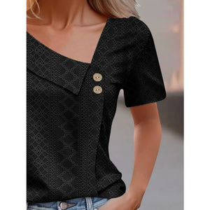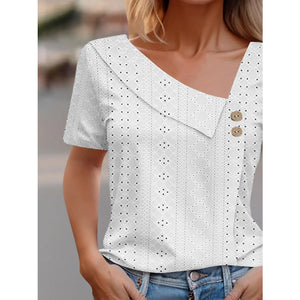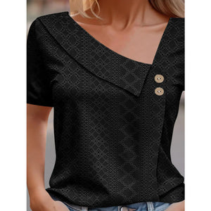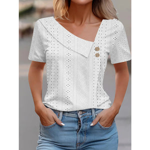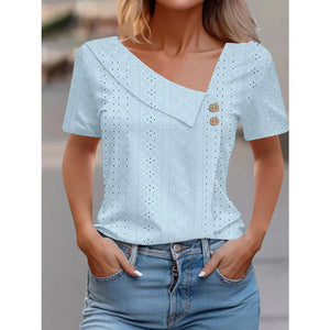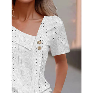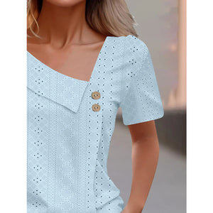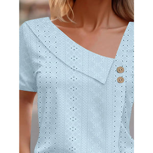 Eyelet Asymmetrical Short Sleeve T-Shirt