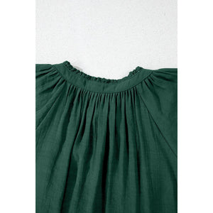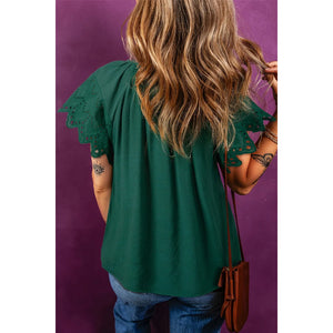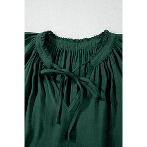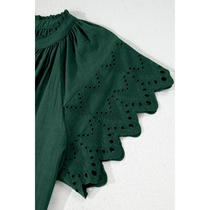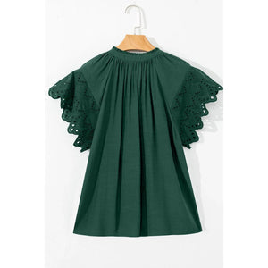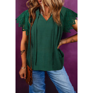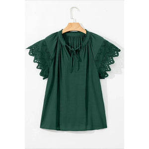 Eyelet Embroidered Sleeve Tie Neck Blouse