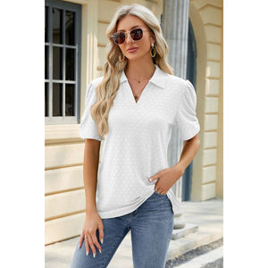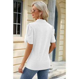 Eyelet Johnny Collar Puff Sleeve Blouse