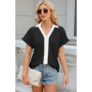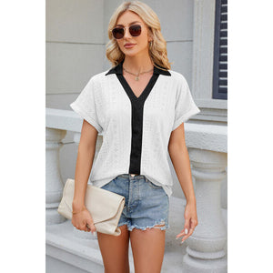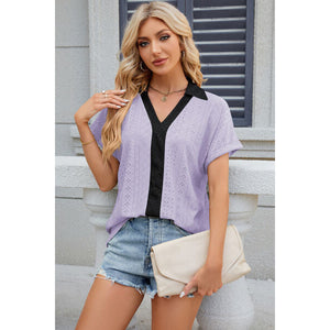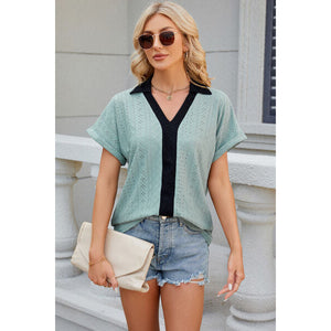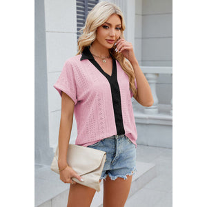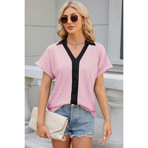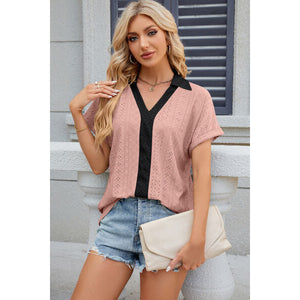 Eyelet Johnny Collar Short Sleeve T-Shirt