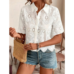Eyelet Lace Short Sleeve Button-Up Shirt