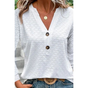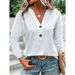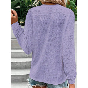 Eyelet Notched Long Sleeve T-Shirt