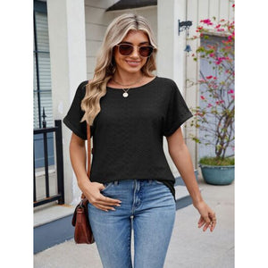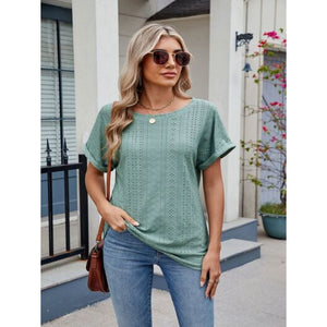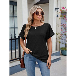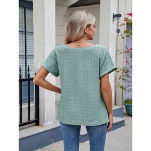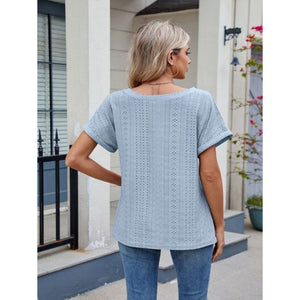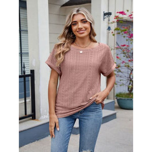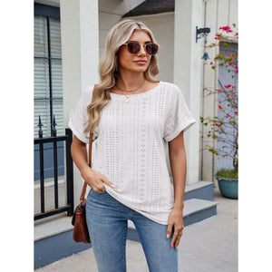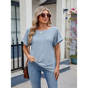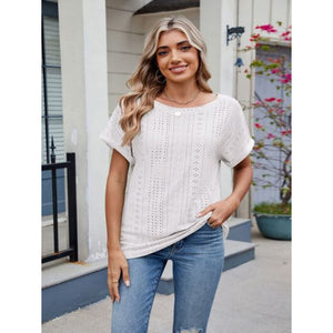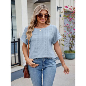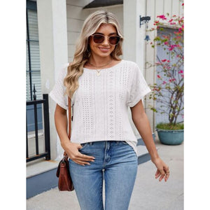 Eyelet Round Neck Short Sleeve Top