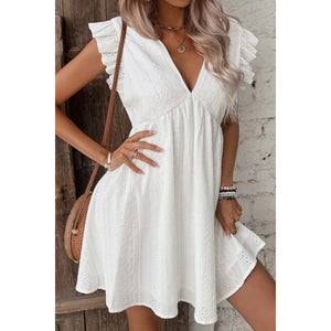 Eyelet Ruffled Cap Sleeve Mini Dress