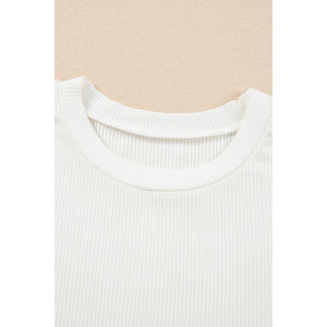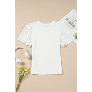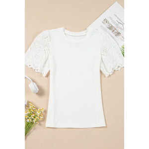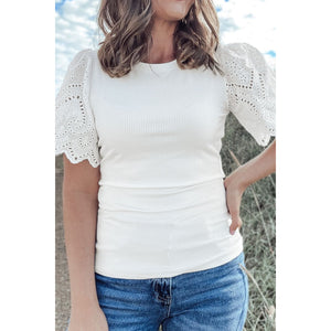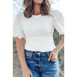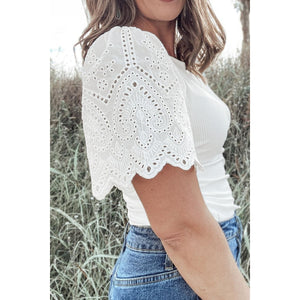 Eyelet Short Sleeve Patchwork Ribbed Top