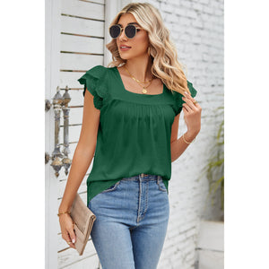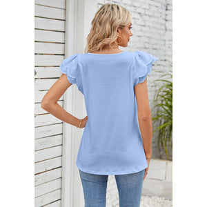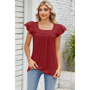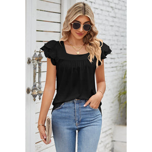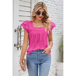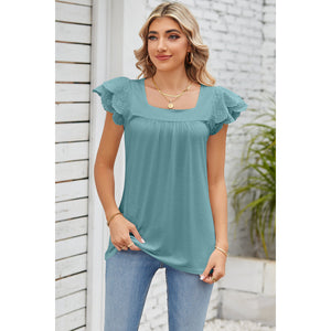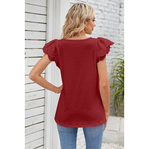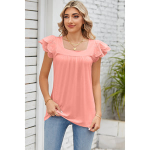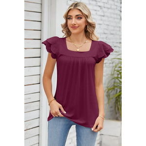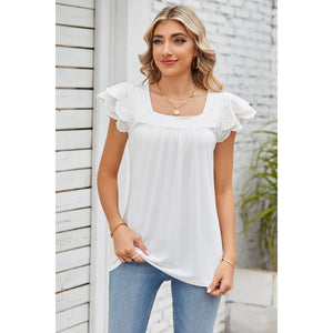 Eyelet Square Neck Cap Sleeve Blouse