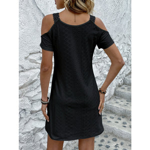 Eyelet V-Neck Cold Shoulder Mini Dress