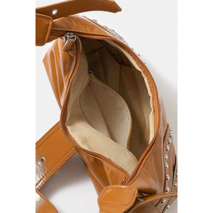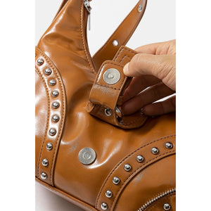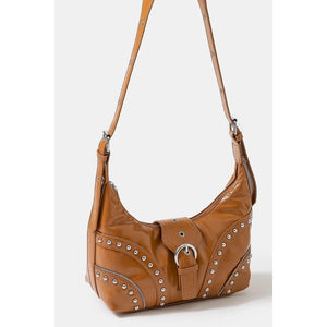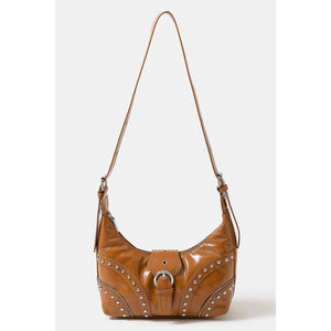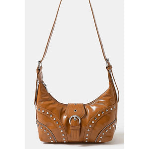 Fame Faux Leather Studded Trim Shoulder Bag