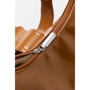 This stylish Western-inspired crossbody bag features premium brown leather construction with eye-catching silver stud embellishments. The curved hobo design offers ample storage space while maintaining a sleek silhouette. Key highlights include an adjustable leather strap for comfortable crossbody wear, decorative buckle detailing, and durable metal hardware. The rich cognac brown leather provides a luxurious feel and versatile styling options. Perfect for casual outings or adding a bohemian touch to any outfit, this bag combines functionality with distinctive Western flair through its studded accents and curved design.